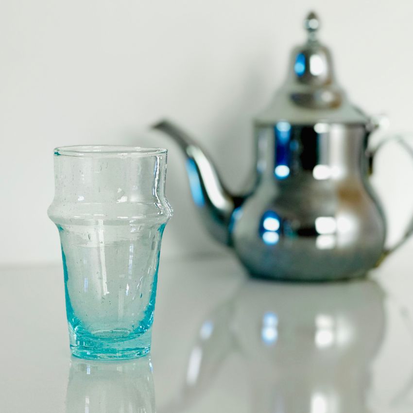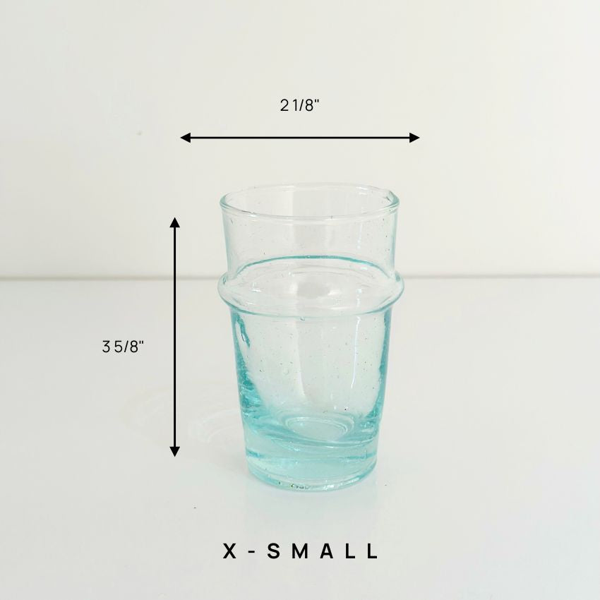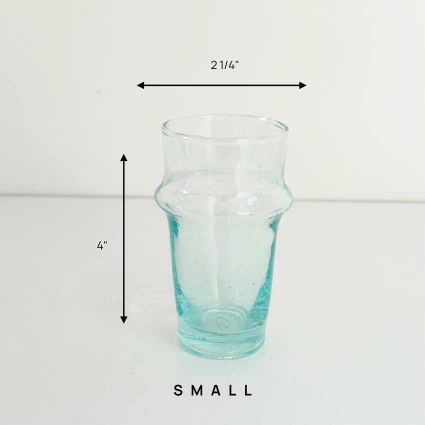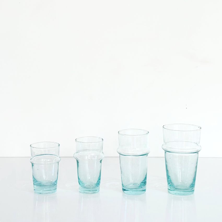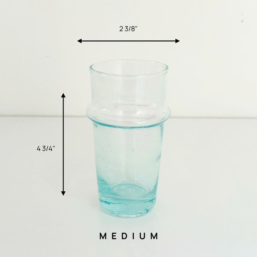 100% Handblown Recycled Glass, flared ridge for extra grip and to make stackable.